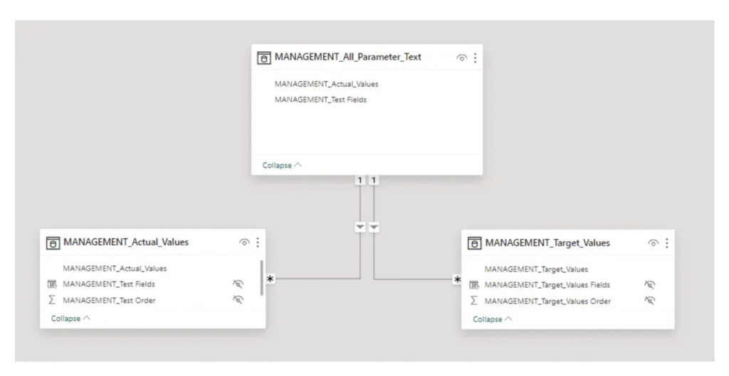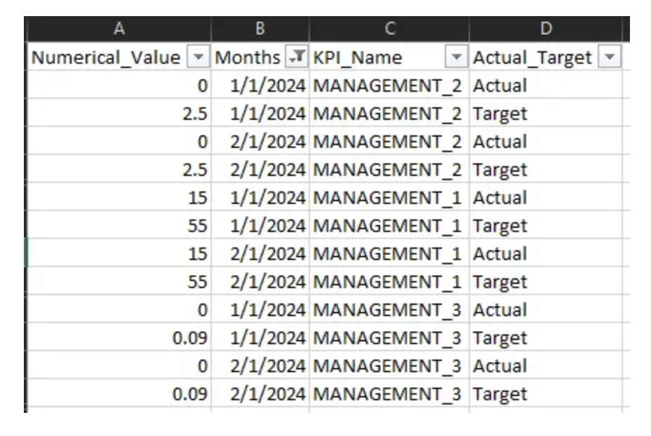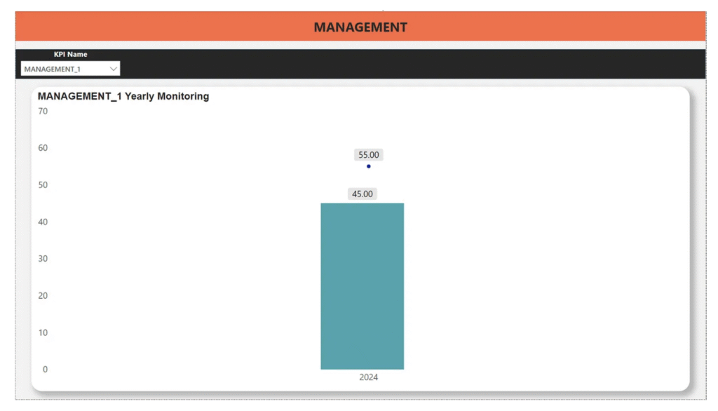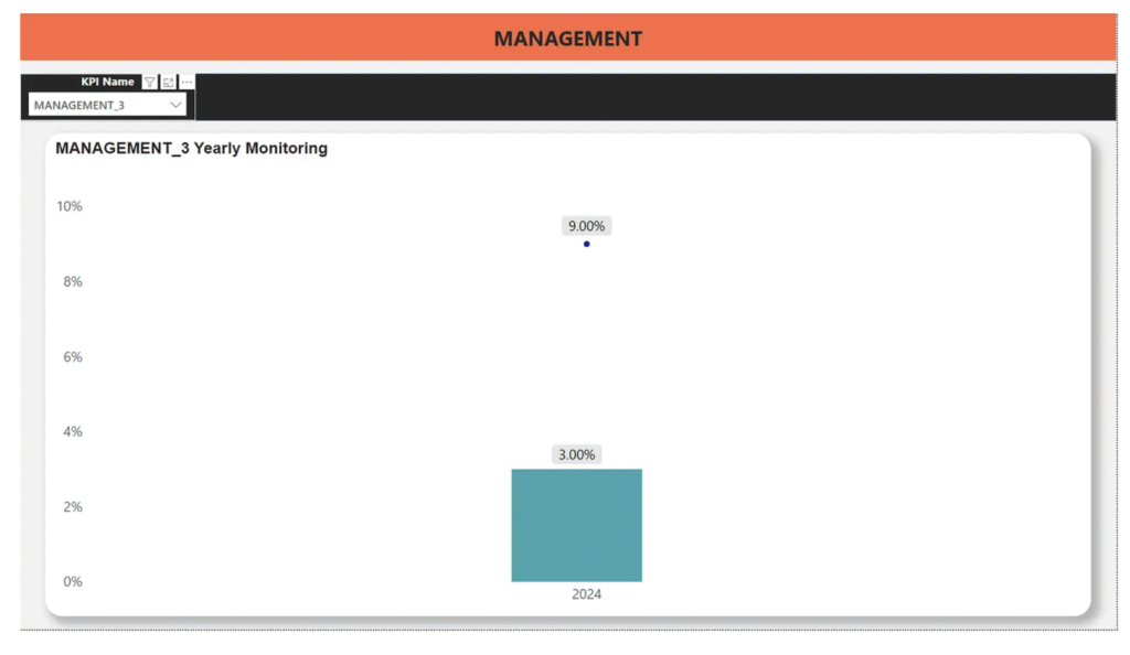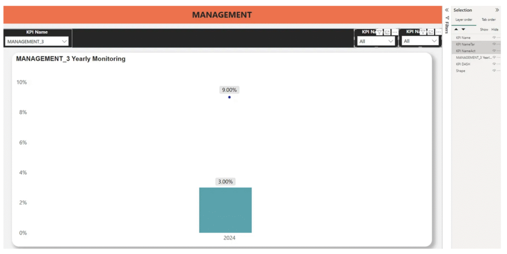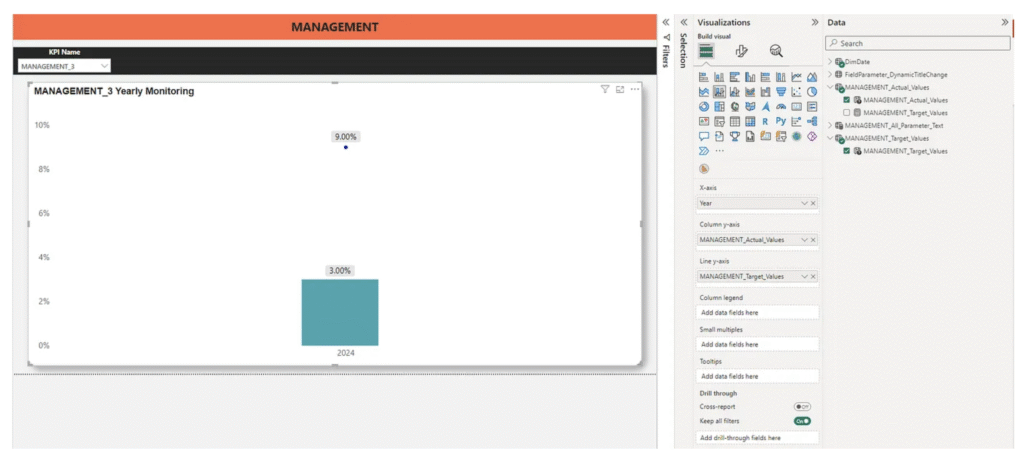 In this scenario, the dataset contains MANAGEMENT_1 (whole number), MANAGEMENT_2 (decimal number), and MANAGEMENT_3 (percentages). Stakeholders want to see these values reflected dynamically in the Power BI dashboard titles.