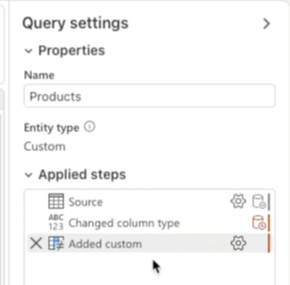 Query Ayarları bölmesinde Power Query’nin uyguladığı her dönüşümü inceleyebilirsiniz ve işin ilginç kısmı şu ki, Özel Sütun iletişim kutusuna elle ham M kodu yazmış olmamıza rağmen, bu adım şimdi “Added Custom” olarak görünür ve Power BI’ın Koşullu Sütun için kullandığı aynı simgeyi taşır. Bu görsel ipucu, aslında her iki yaklaşımın da aynı mantığı ürettiğini hatırlatır.