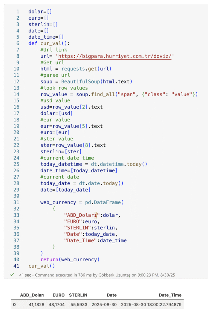 Python’ın Beautiful Soup kütüphanesini kullanarak Hurriyet/Doviz’den döviz verilerini nasıl kazıyacağınızı ve bunları Microsoft Fabric Lakehouse veya Warehouse’a nasıl depolayacağınızı öğrenin. Adım adım talimatları izleyin, gerekli kütüphaneleri kurun, olası web sayfası yapı değişikliklerini yönetin ve doğru veri alımını etkili tekniklerle sağlayın.